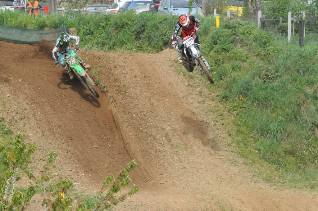 Les départs MX1 sont toujours impressionnants avec de nombreux coudes à coudes et beaucoup de vitesse en bout de ligne droite. C’est le trio Xavier Boog Official Page, Grégory Aranda et Valentin Teillet (public)qui sortira en tête au premier virage. Survolté comme l’an dernier sur cette piste compliquée qui semble convenir à son style, c’est Nicolas Dercourt #411 qui fait le spectacle en début de manche avec des attaques sur Nicolas aubin 131 pour aller chercher la quatrième place. Le pilote Suzuki reste solide et résiste pendant que Nico se fatigue rapidement en forçant. Petit problème pour Teillet qui se retrouve cinquième après avoir calé. Il ne résistera pas au retour du belge Damon Graulus mais il assure une belle sixième place. Le pilote Team VRT 3as peut être satisfait de son weekend vus ses problèmes physiques des derniers mois.